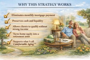 - Use a Reverse Mortgage (HECM for Purchase) for the rest