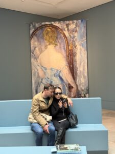 At one moment, while I was sitting on a bench and enjoying the painting a woman about my age sat next to me. I found out that she and her daughter had come from New York. After we chitchatted a little, I asked her what she felt while looking at the image. I was not surprised that she seemed to lack words to express it. Then I asked the same question to her daughter. She was describing what she saw, not what she felt.