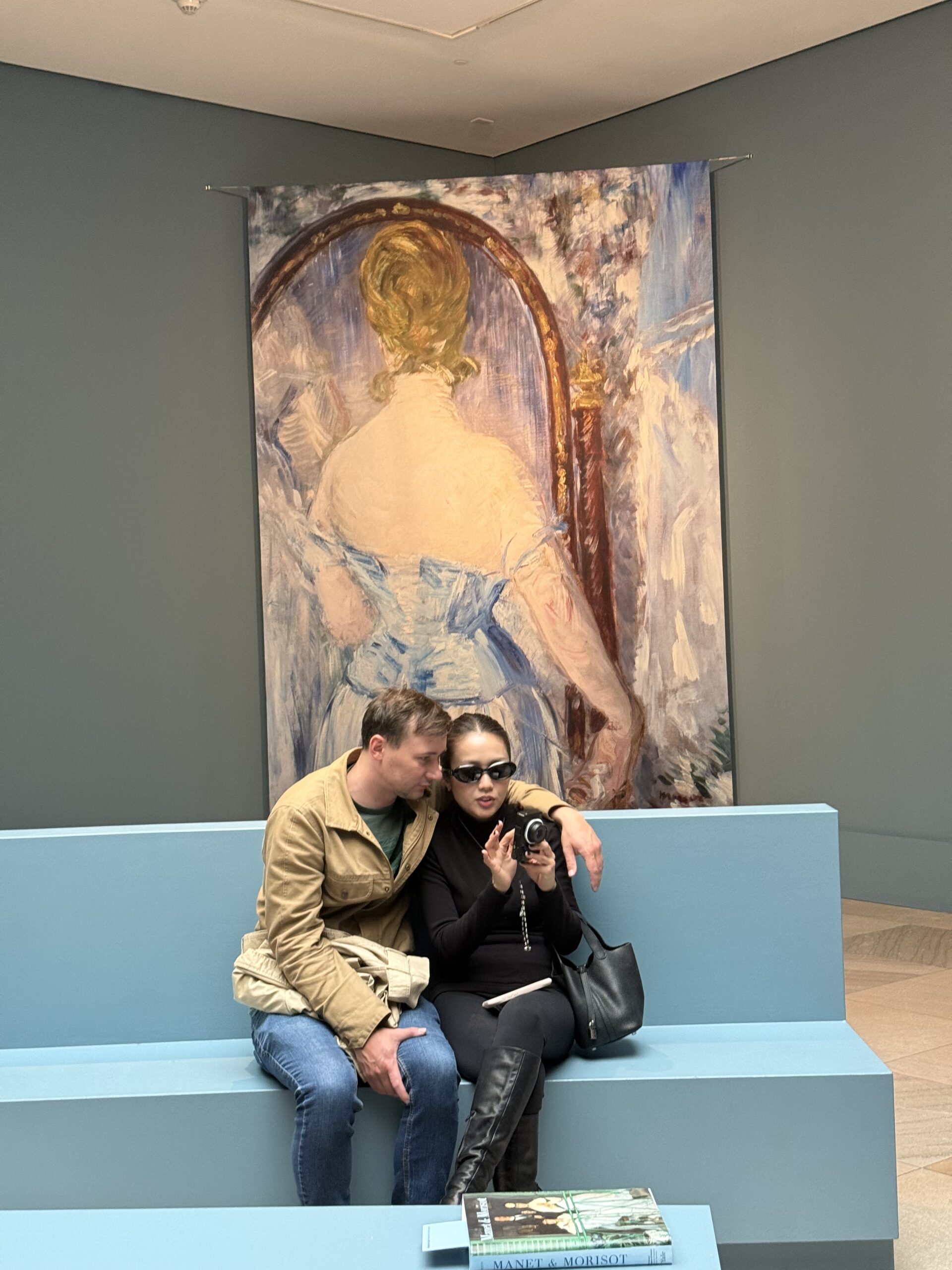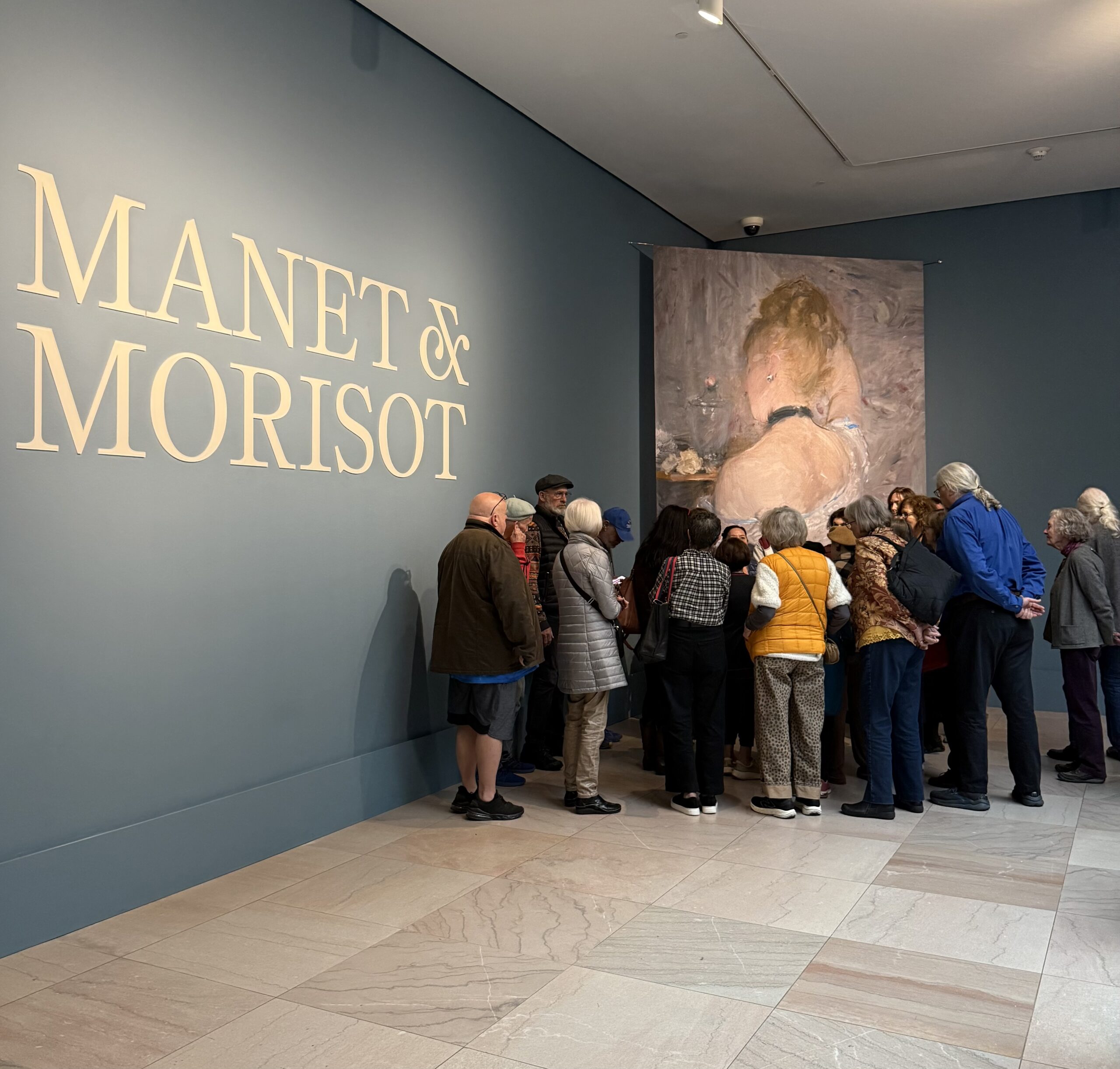 Recently we went to see art at the Legion of Honor, the exhibit of paintings by Monet and Morisot — two French painters whose lives and art were interconnected. While I was enjoying the art itself, as always, I noticed and photographed people. That is something I can’t help doing.