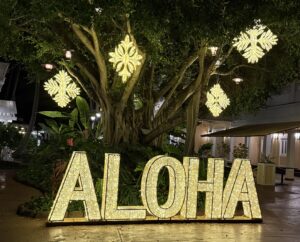 During our time in Kauai, I encountered a particularly beautiful celebration of light at a local shopping center, and ever-present Santa.