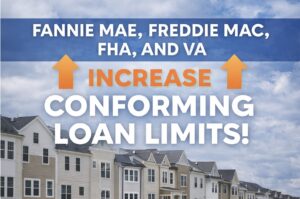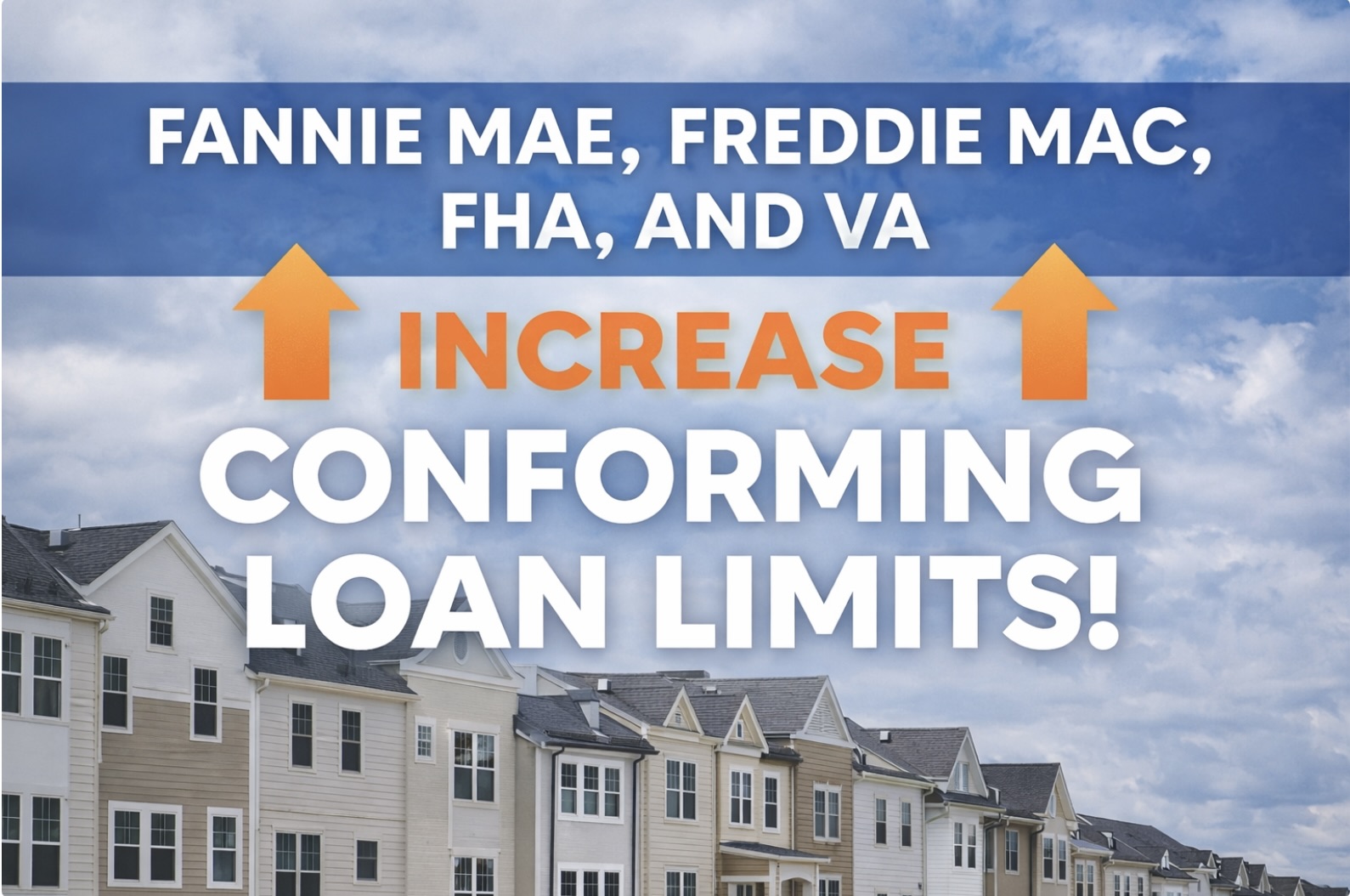 First, conforming loan limits have been increased by Fannie Mae, Freddie Mac, FHA, and VA.