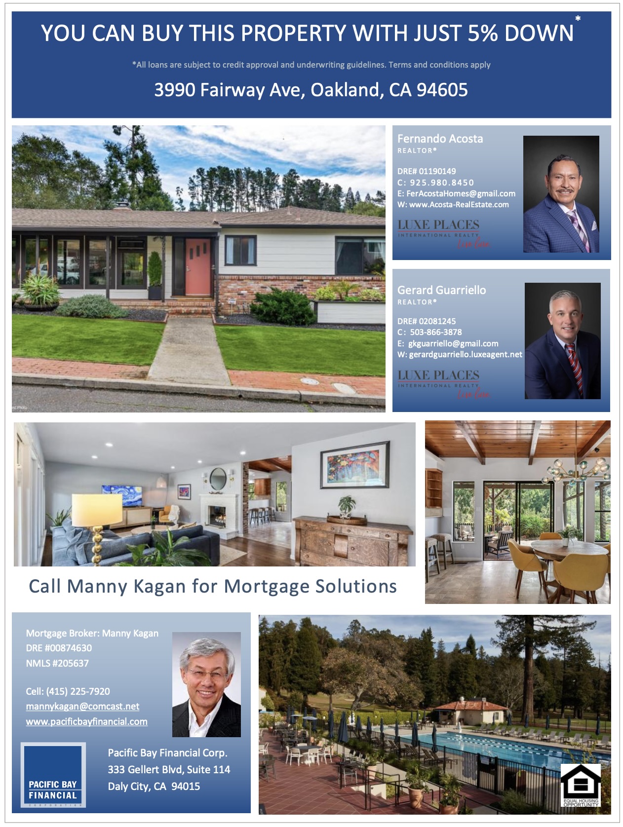 I was there because the property has been recently listed by Fernando Acosta and Gerard Guarriello. They asked me to prepare a flyer explaining how this home could potentially be purchased with only 5% down. Yes, it is possible. With a realistic interest rate and an income of around $200,000, a buyer may qualify with 5% down. Of course, you can always put more down if you wish.