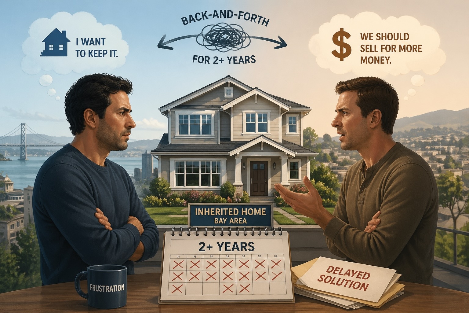 One of my clients experienced this firsthand. He and his brother inherited a beautiful home here in the Bay Area. For more than two years, they argued over what to do with the property. One wanted to keep it, the other wanted to sell for more money. It became a constant back-and-forth, creating frustration and delaying a solution.